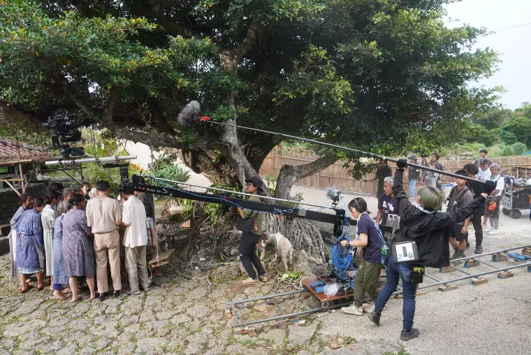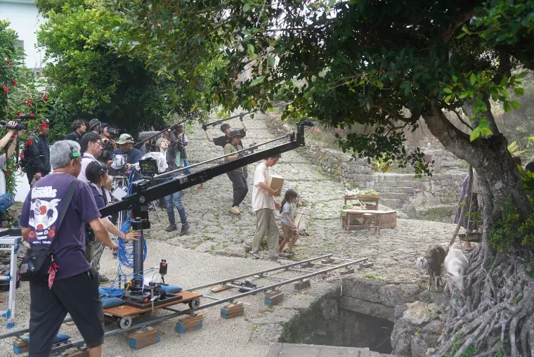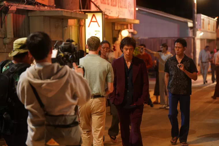 ロケ地となった名護市辺野古の社交街(通称アップルタウン)は、1950年代後半に基地建設をきっかけに栄えたエリア。劇中では当時の辺野古の街並みを、丁寧に再現し、アメリカ統治下時代の雰囲気のなか撮影が行われました。