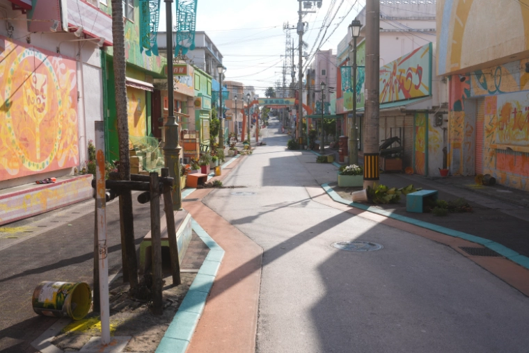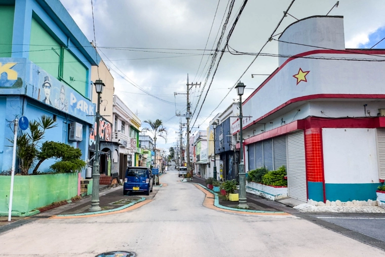 数多くの作品が撮影されている金武町新開地は、どこを見てもカラフルな街並みが広がり、まるで映画の世界に入り込んだような気分でロケ地巡りを楽しめます。