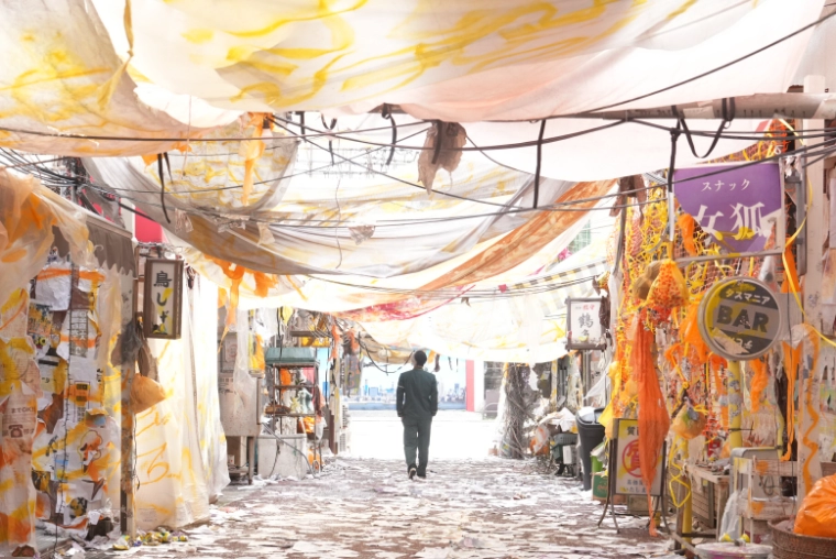 商店街の協力で作られた映画のセットは、東風商店街とは真逆の雰囲気を見事に再現。
